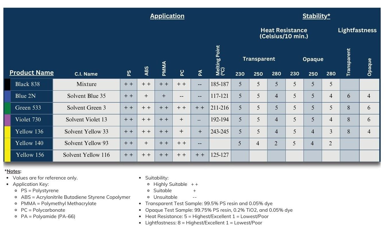 polycarbonate, polyamide-6 and polyamide-66, producing molds of excellent colors